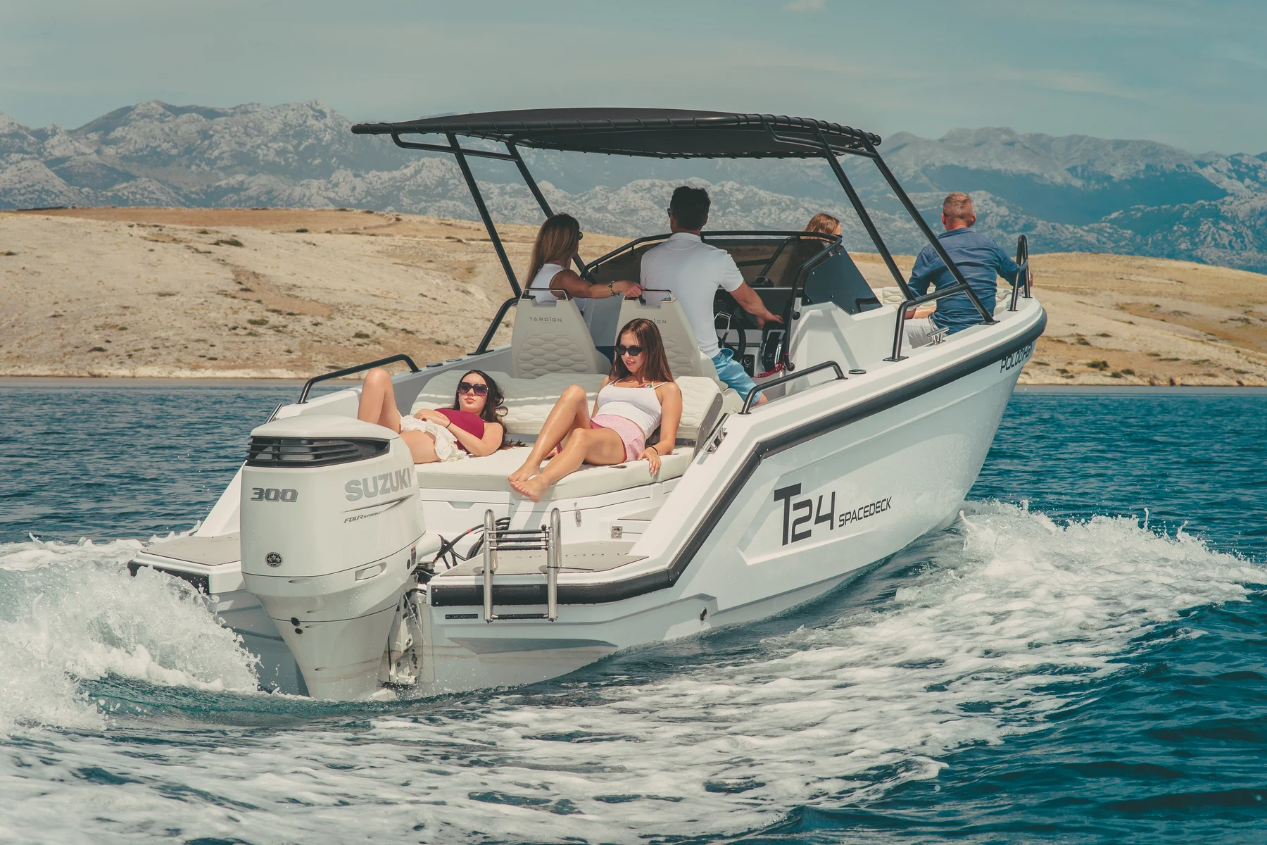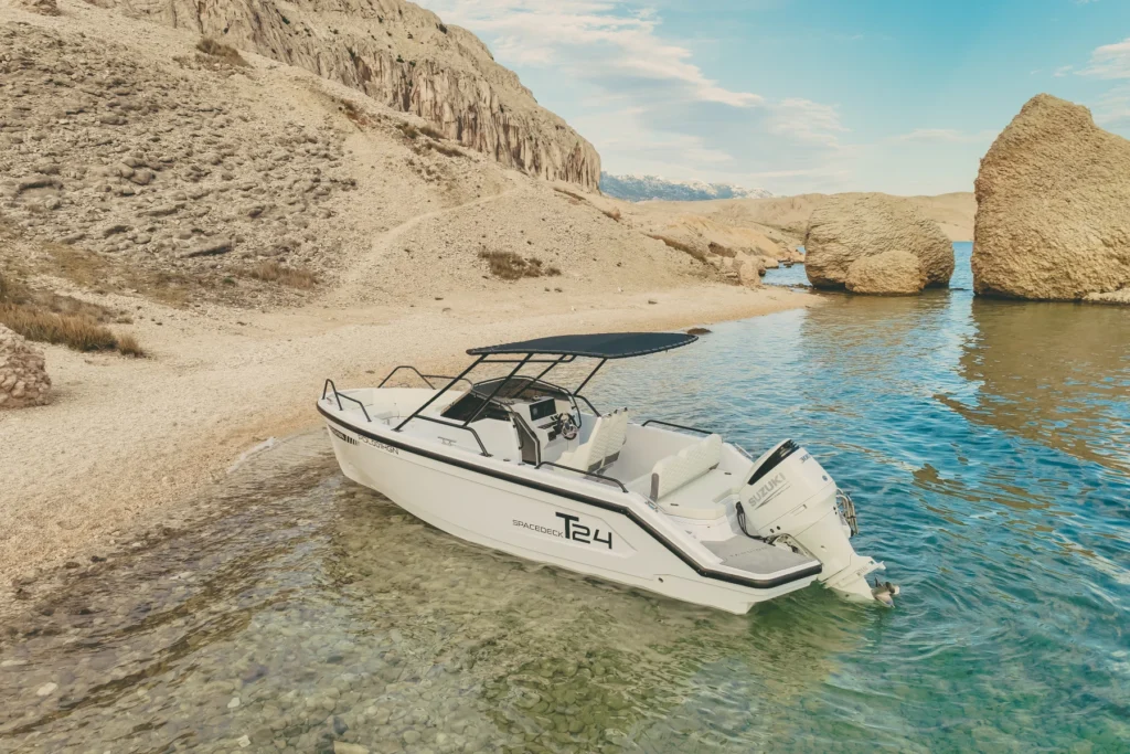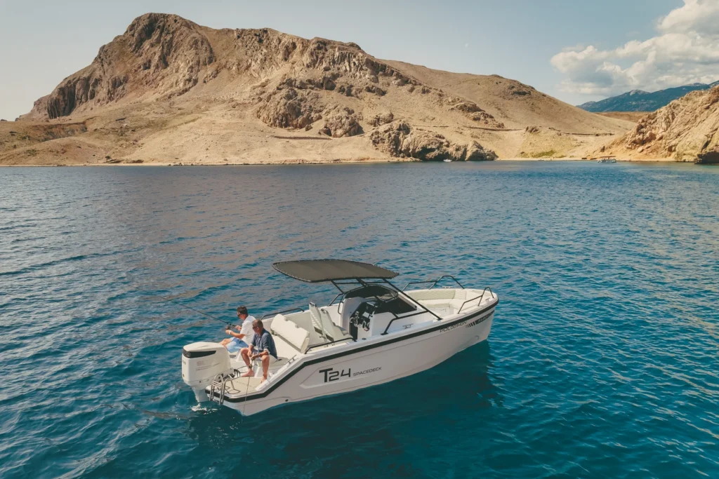 T24 Spacedeck to jacht łączący funkcjonalność i wygodę – idealny do odpoczynku, wędkowania, rejsów z rodziną i aktywnej zabawy na wodzie.